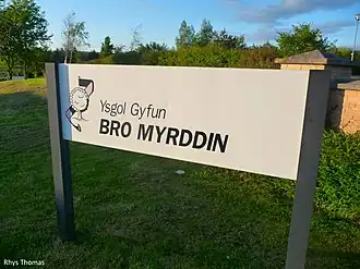 Ysgol Gyfun Gymraeg Bro Myrddin (English: Bro Myrddin Welsh Comprehensive school) is a Welsh-medium school in Carmarthenshire, Wales. It is situated near the village of Croesyceiliog, about 11⁄4 miles (2 km) south of Carmarthen. Myrddin, the Welsh name of the legendary figure Merlin, is traditionally associated with the town of Carmarthen (Caerfyrddin: Myrddin's fort), and Bro Myrddin means "Myrddin's country (or vale)".