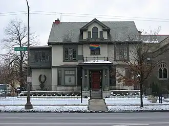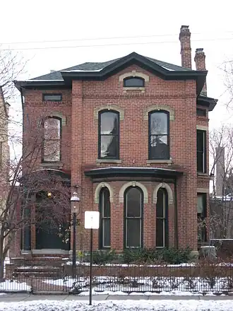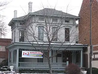 Early in Columbus's history, around the mid-1800s, East Broad Street became one of the most fashionable places to live, from downtown past Franklin Park. This carried into the early 1900s, when grand hotels and apartment buildings like the Royal York and Brunson Place were built. One early house from 1838, the Alfred Kelley mansion, was torn down and replaced with the Christopher Inn around 1961, itself torn down in 1988.[6][7]
