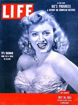 ![]() As Dagmar rose to fame on Broadway Open House, Alfred Eisenstaedt photographed her for the July 16, 1951 issue of Life. | |