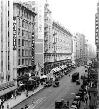 Los Angeles's Broadway Theater District stretches for six blocks from Third to Ninth Streets along South Broadway in Downtown Los Angeles, and contains twelve movie theaters built between 1910 and 1931. In 1986, Los Angeles Times columnist Jack Smith called the district "the only large concentration of vintage movie theaters left in America."[4]