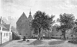 In 1326 the estate was owned by Absalon Jonsen Ulfeldt. From 1641, it was inherited by the Skeel and Sehested families for whom it was the seat from 1759 to 1930. The main wing with its round tower was built for Otte Skeel in 1644. In 1839, it was renovated in the Neo-Gothic style by Gustav Friedrich Hetsch. The corner tower was added in 1895 and the south wing in 1905. Substantial renovation and adaptation work was carried out in the 1920s and the 1950s.[2] Part of the premises has now been converted into a hotel. There is also a museum of antiquities on the estate.[3]