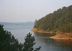 Broken Bow Lake is a reservoir in southeastern Oklahoma, located on Mountain Fork River and 9 miles (14 km) northeast of the town of Broken Bow in McCurtain County. It is one of the largest fresh water lakes within the state of Oklahoma, and a popular tourist destination for locals and visitors from neighboring Texas and Arkansas.