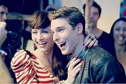 The video was directed by Marc Klasfeld.[14] The video was released on Vevo on March 22, 2012.[15] The story shifts back and forth between the previous day and the present day. The video starts out with Amy entering the studio late as the band is already in mid-rehearsal, and her bandmates give her concerned looks as to why she seems so out of it, while Amy starts shedding her outdoor garbs to loosen up. She sits down on her bed and trades her discomforting heels for the comfort of throw rugs under her bare feet, grabbing hold of her mic stand and flashing her band a reassuring gesture. They begin to perform "Brokenhearted". The night before, Amy, Nick, their band members and other friends party in an apartment, complete with drinking, dancing, a game of darts and table tennis. Amy thinks she and Nick are romantically connected. The next morning, Amy furiously checks her phone to see if Nick has called, but he hasn't. At the end of band rehearsals, it turns out that Nick is already seeing someone else.