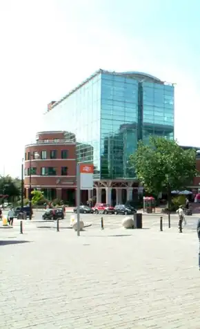 The building was designed in the modern style, built in red brick and glass, and was completed in 1988.[1] The layout involved a semi-circular four-storey block, clad in red brick, and a taller tower block, clad in glass, behind. The tower block featured a recessed glass entrance in the northeast corner, accessible from Bromley High Street.[3]