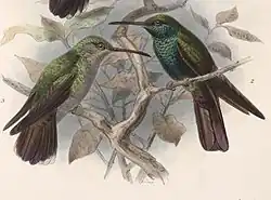 3. ^ Gould, John (1853). A Monograph of the Trochilidae, or Family of Humming-Birds. Vol. 2. London: self. Plate 90 and text (Part 22). The 5 volumes were issued in 25 parts between 1849 and 1861. Title pages of all volumes bear the date of 1861. For details see: Waterhouse, Frederick Herschel (1885). The Dates of Publication of Some of the Zoological Works of the Late John Gould, F.R.S. London: R.H. Porter. pp. 45–55.