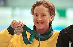 ![]() Stockham with one of the three bronze medals she won at the 2000 Sydney Paralympic Games | ||||||||||||||||||||||||||||||