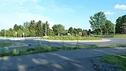 These two segments were continuous prior to the construction of the Airport Parkway, which eradicated a small railway-junction settlement[1] whose traces can still be seen just southeast of the interchange.
