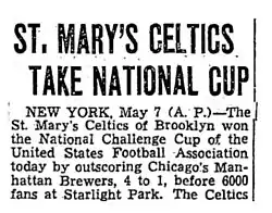 - ^ "Scots Eliminate Brooklyn Celtics". Brooklyn Eagle. 19 April 1915. p. 14. Retrieved 17 August 2025.