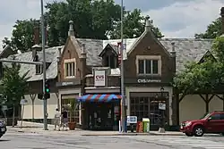 Developer J.C. Nichols founded the district in 1919 as Kansas City's first suburban shopping center, predating the nearby Country Club Plaza.[1] The district was initially served by the Country Club Line of the Kansas City Streetcar and has since been converted into the Henry Wiggins Trolley Track Trail.[2]