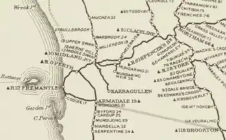 In 1927, a trunk railway line from Fremantle via Armadale, Brookton and Corrigin and on from there to Salmon Gums on the Coolgardie to Esperance railway was proposed, of which only the Fremantle to Armadale and Brookton to Corrigin sections already existed.[1][6]
