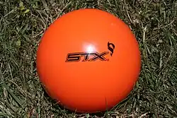In informal play, players can use any type of ball, though a soccer ball is usually used. In more formal play, two types of balls are manufactured for use. An outdoor ball is usually the color blue, while the indoor ball is the color orange.