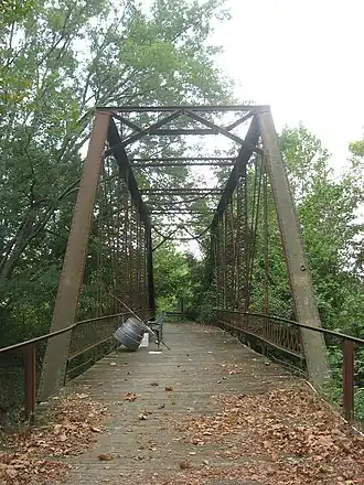 Brown County Bridge No. 36, also known as Hickory Hill Road Bridge and Wrightsman Bridge, is a historic Pratt through truss bridge located at Washington Township, Brown County, Indiana. It was built by the Pan-American Bridge Company in 1908. It consists of a 90 foot long span and 31 foot, 9 inch, span. It was closed to vehicular traffic in November 1990, but remains open to foot traffic on the Ten O'Clock Treaty Line Trail.[2]: 5