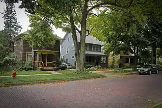 The Brown Street Historic District is a nationally recognized historic district located in Iowa City, Iowa, United States. It was listed on the National Register of Historic Places in 1994, and its boundaries were increased in 2004.[1] At the time of the boundary increase it consisted of 246 resources, which included 201 contributing buildings, one contributing structure, and 44 non-contributing buildings.[2] Brown and East Ronalds Streets are both part of the city's original plat when it was laid out as the capital of the Iowa Territory. They are located on the north edge of the plat. Its significance is derived from the settlement patterns here, the development of a major transportation corridor, the neighborhood's affiliation with the University of Iowa and its growth around the turn of the 20th century, and the architectural styles and forms that are found here from the 1850s to the 1920s.[3] Many of the city's Bohemian-immigrant population lived here. Businessmen and blue-collar workers lived side by side to each other, as did professors from the University of Iowa.[3] The old Military Road was routed on Brown Street, and after it was paved with bricks in 1907, it became the preferred route for funeral processions to Oakland Cemetery.