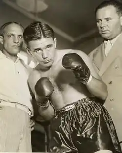![]() Ahlberg with his American coach Artie Rose and manager Paul Damski in 1939 | ||||||||||||