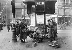 As garrison commander in Cottbus, Buchrucker supported the March 1920 Kapp Putsch against the German government.[5] On 13 March mutinous troops occupied the Berlin government district and the Reich government fled to Stuttgart via Dresden. Buchrucker banned demonstrations and rallies in Cottbus and took over executive power. In response to the general strike, which the Majority Social Democratic Party (MSPD) government and trade unions called to protest the putsch, he used posters that promised, "Protection for those willing to work!" As Reichswehr patrols encountered resistance on 15 March, they, at Buchrucker's instigation,[6] fired with machine guns at a fleeing crowd. Four people died and five were seriously wounded. Meanwhile, Reichswehr troops broke into the printing house of the newspaper Freier Volkswille belonging to the more radical Independent Social Democratic Party (USPD) and destroyed its high-speed printing presses with hand grenades.