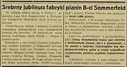 During the interwar period, the company changed its name first to Sommerfeld Brothers (Polish: Bracia Sommerfeld) (1921–1922) associated with his brother Ernest,[6] then to Bronisław Sommerfeld's Piano and harmoniums factory (Polish: Fabryka fortepianów i budowa organów kościelnych Bronisława Sommerfelda) in 1927.