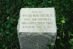 - ^ Douglas Allen Foster and Anthony L. Dunnavant, The Encyclopedia of the Stone-Campbell Movement: Christian Church (Disciples of Christ), Christian Churches/Churches of Christ, Churches of Christ, Wm. B. Eerdmans Publishing, 2004, ISBN 0-8028-3898-7, ISBN 978-0-8028-3898-8, 854 pages, entry on Brush Run Church