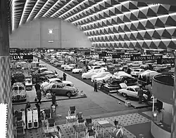 The show was first organized in 1902 in the Parc du Cinquantenaire/Jubelpark in Brussels.[1][2] The yearly Motor Show was interrupted between 1915 and 1919 because of World War I. By 1937, the exhibit area in the Cinquantenaire Park became too small and the Motor Show moved to the Centenary Palace on the Heysel/Heizel Plateau, in the north-west of Brussels, only to be cancelled from 1940 to 1948 due to the Second World War. A third period of interruption occurred between 1957 and 1959 because of the 1958 Brussels World's Fair (Expo 58), which occupied the whole Heysel Plateau.