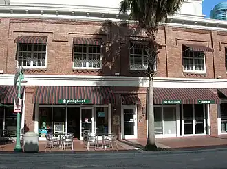 The Post Office was located in the building from 1914 to 1925, about this time The Fort Lauderdale Bank also occupied the ground floor.[2] From the 1920s to the early 1990s the second floor was a hotel or rooming house.[2] Hotels in the building included the Hotel DeSoto (1919 to at least 1927), the Lee Hotel (1936-1938), the Hotel Boriss (1940–1946) and the Dorsey Hotel (1950–1965) a men-only hotel with a cowboy motif.[2] The law offices of attorney and City Judge Ennis Shepherd occupied a portion of the ground floor from 1947 to the early 1900s.[2][4][note 1] Read's Dry Goods where locals often purchased materials to make clothes, other dry goods merchants, beef purveyors, real estate offices and insurance agencies were among other tenants.[2] Fort Lauderdale's downtown business district declined in the 1960s due to suburbanization.[2] The building got a historically appropriate renovation about 1998.[2][3] The renovation and application for designation as historic was part of a deal a local developer made allowing the demolition of another old local building, the Oliver Building.[6]