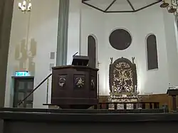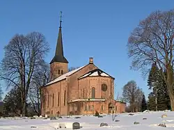 The church is made of brick and can accommodate 400 people.[1] There is a cemetery next to the church.[1][3] An urn with the remains of the film director Rasmus Breistein is kept at the church.[4]