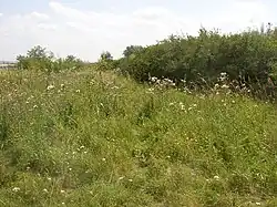 Buštěhrad slag heap (Czech: Buštěhradská halda; 357 metres (1,171 ft) asl) is a huge artificial hill between municipalities of Kladno-Vrapice, Buštěhrad and Stehelčeves near Kladno in the Central Bohemian Region of the Czech Republic that have arisen in the late 20th century as a dumping site for slag from the Kladno ironworks, and other industrial waste. This is one of the most massive heaps of Kladno area, which, particularly when viewed from the northeast, forms by far the most visible and noticeable part of the landscape in shape of a mesa.