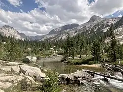 The Pacific Crest Trail follows Bubbs Creek from Forester Pass as far as Vidette Creek, and the Bubbs Creek Trail follows the creek downstream of that point into Kings Canyon.