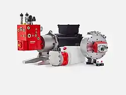 Bucher Hydraulics develops, manufactures and sells hydraulic and electronic components.[56] The company develops, manufactures and sells pumps, motors, valves and manifold block systems, cylinders, power units and power electronics.[57] Production facilities are located in Europe, the United States,[6] China[44] and India.[58]