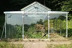 Along with the rest of the ridge Buchkogel serves as habitat for the chamois. The total number of chamois within the Graz city borders has been estimated at 50 to 70 individuals by September 2018.[12] The area north of the Buchkogel has been called ornithologically significant after a breeding bird survey in 2000/01. The observed species include Grey-headed woodpecker, Green woodpecker, Stock dove, Black woodpecker, Black stork and Eurasian sparrowhawk, all protected under the Council Directive 92/43/EEC on the Conservation of natural habitats and of wild fauna and flora. In the area of the blind valley Lesser spotted woodpecker and Red-backed shrike also occur as breeding birds. Four of them (Green woodpecker, Stock dove, Eurasian sparrowhawk and Lesser spotted woodpecker) are included on the IUCN Red List.[13]
