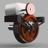 Vertical movement of the driving wheel results in the gear segments moving due to the internal mechanism, and the driving wheel can move in a horizontal or vertical direction with respect to the gear wheel, while still transferring the momentum of the gear wheel.[1]