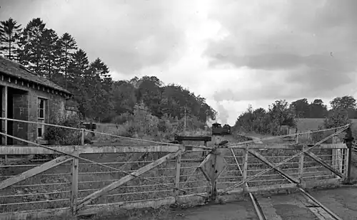 The station was opened on 26 May 1856 by the Forth and Clyde Junction Railway. On the westbound platform was the station building and on the south side was the goods yard. The station initially had one platform but a second one was built in 1892 as well as a signal box and a loop. The signal box was closed and replaced with a new one in 1895 when the loop was reduced to a single track. The station closed to passengers on 1 October 1951[1] and the signal box closed in 1956. The station closed to goods on 5 October 1959.[2]