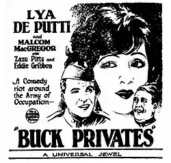 Buck Privates is a 1928 American silent comedy film directed by Melville W. Brown and starring Lya De Putti, Malcolm McGregor, and Zasu Pitts.[1][2]