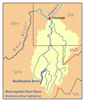 ![]() Map of the Monongahela River basin, highlighting the Buckhannon River | |