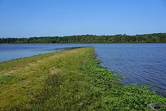 Buckhorn Reservoir is a reservoir in Wilson County, North Carolina, USA, created by the Buckhorn Dam. The reservoir is the primary water supply for the city of Wilson. The original Buckhorn Dam was built in 1974, 1,000 feet (300 m) upstream from the current dam.[1] The reservoir at that time had the ability to contain 800 million US gallons (3,000,000 m3) of water. In 1999, a new dam was constructed downstream from the older dam creating the new Buckhorn Reservoir which covers an area of 2,300 acres (9.3 km2) and has a capacity of 7 billion US gallons (26,000,000 m3) when fully filled.