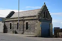 As part of the ongoing redevelopment of Buckie harbour, the RNLI were contacted by the Great North of Scotland railway company in 1883, who wished to extend their lines, and needed the land where the 1860 boathouse stood. A deal was struck, and the boathouse and land were sold for just over £121. A new boathouse (shown right) was constructed on Low Street in 1885, costing £447-19s-0d, but it is not known if this was paid for by the RNLI, or the gift of the railway company.[4][7]