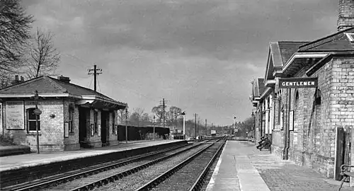 In 1889 the Duke of Buckingham died leaving no male issue meaning that the Dukedom of Buckingham and Chandos became extinct. The family seat at Stowe House was subsequently let to the Comte de Paris, the royalist pretender to the French throne. His residence at Stowe House led the railway company to install bilingual signage at the station as an aid to his staff.[8] In 1898, W H Smith installed a book stall on the platform, this was subsequently replaced by a Wyman's stall when a change in contract resulted in Smith's moving their business to the town centre.[9]