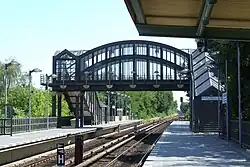 Just before the station there are still two level crossings over Säntisstraße and the busy Buckower Chaussee. The station underwent extensive changes during the restoration of the Dresden railway after the reunification of Germany.
