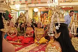High officials of the Cambodian government, by contrast, have tended to support the most conservative of the Maha Nikaya monks, particular the members of a segment known as the boran, an ultra-conservative movement that touts the worldly efficacy of the rote recitation of various Pali and Khmer prayers and discourses.[34] Monks in the boran movement do not typically possess a significant knowledge of Pali, instead focusing on the rote memorization and recitation of certain verses and scriptures considered powerful.[35] Boran monks maintain that by sponsoring recitations of these verses, lay supporters can accrue great merit that will result in immediate, worldly benefits, such as financial or career success.[30] A large number of senior Cambodian officials (including Hun Sen) have patronized boran temples, providing for extensive expansions and rich decoration of the most popular temples.[36] Boran monks also teach the efficacy of "group repentance" rituals, where, through the recitation of Pali texts, the karmic fruit of earlier misdeeds can be avoided or moderated.[37] These rituals, which developed from New Years repentance ceremonies, have become very popular among certain segments of Cambodian society, and were conducted by the previous Maha Nikaya sangharaja, Tep Vong.[37]