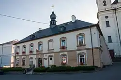 The Church of the Assumption of the Virgin Mary was built in the late Baroque style in 1745–1755. The interior includes a late Gothic statue of the Madonna and Child from around 1500.[3][5]