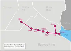 The Buenos Aires Central Railway (BACR) (in Spanish: Ferrocarril Central Buenos Aires) was an Argentine railway company which built and operated a 1,435 mm (4 ft 8+1⁄2 in) standard gauge railway line from Buenos Aires to the city of 4 de Febrero in Santa Fe.