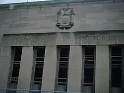 The Buffalo Memorial Auditorium was a public works project designed by Green & James to replace the aging Broadway Auditorium and Fort Erie's recently collapsed Peace Bridge Arena. In June 1938, city officials sent a loan and grant application to the Public Works Administration for funds to build the structure. The approval of the $1.2 million grant was announced in Washington, D.C., on October 7, 1938.[2] Construction at the junction of the Erie Canal and Main-Hamburg Canal began on November 30, 1939.[3]