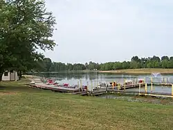 Buffalo Trace Park is a 147-acre (0.59 km2) public park preserve in northern Harrison County, Indiana near the town of Palmyra, Indiana. The park is along the edge of the old Buffalo Trace, a historic bison migration trail that was later converted into a road. In 1971, the 30-acre (120,000 m2) man-made Lake Coleman was added to the park and stocked with fish, and is maintained by the Indiana Department of Natural Resources. The park's amenities include public camping, fishing, a public beach, petting zoo, walking paths, playgrounds, boating, an 18-hole disc golf course and ball courts. The park is owned by Harrison County and managed by the Harrison County Park and Recreation Department.