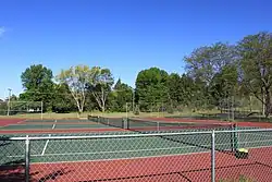 There is a large public swimming pool and a smaller children's wading pool with interactive toys. Buhr Park also includes 39 acres (160,000 m2) of rolling hills, picnic areas with barbecue grills, a children's play area, softball diamonds, soccer fields and outdoor tennis courts. The Cobblestone Farm and Museum is located on the park grounds.[2]