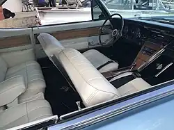 1968 models had reshaped loop-type bumpers that surrounded both the vehicle's recessed crosshatch front grille and tail lamps. Hidden wiper arms debuted. Federally mandated side marker lights appeared, as inverted trapezoids on the lower leading edges of the front fenders, and circular in the rear. The interior was restyled and for the first time shared its instrument panel with the other full-size Buick models. Shoulder belts for front outboard occupants were made standard on all cars built from January 1, 1968. Mechanically, the transmission lost its variable pitch torque converter. A tilt steering wheel was standard.[26] Sales set another new record in 1968, as 49,284 units were sold.