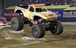 Bulldozer was a monster truck designed by Guy Wood. It featured one of the first 3-D body shells, with horns sticking out of the roof. The truck debuted in 1997 as a promotional truck for Smoke Craft jerky in the USA Motorsports series (since acquired by Monster Jam, who now own the rights to the design). The truck has been driven by Bobby Zoelner, Steve Reynolds, Rob Knell, former Taurus driver Eldon DePew, and current Maximum Destruction superstar Tom Meents, as well as Chuck Werner and Alex Blackwell. The truck El Toro Loco was created as a spin-off of the Bulldozer design.