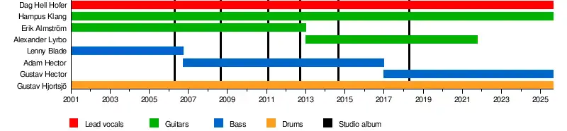 | Members | Dag "Hell" Hofer Hampus Klang Gustav Hjortsjö Gustav Hector Freddie Johansson |