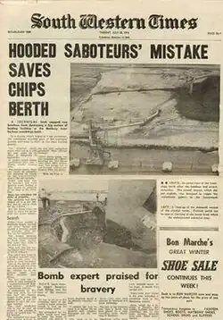 - ^ Uren, M.C., ed. (20 July 1976). "Sabotage bomb fails to cripple chip base". The West Australian. Perth: West Australian Newspapers. pp. 1, 3.