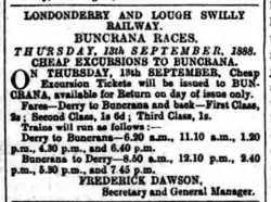 - ^ "Cheap Excursions to Buncrana". Londonderry Sentinel. 11 September 1888.