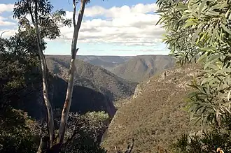 The area features dramatic cliffs, gorges and a network of caves. Besides caving, it is used for bushwalking, camping, and other adventure activities.[1] A nearby lookout, known as "The Lookdown", has views of the Shoalhaven River, Bungonia Gorge and Bungonia Creek.