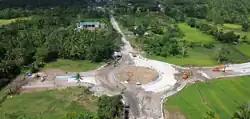 An aerial image of Burauen Bypass Road Rotonda facing in the direction of Burauen Town Proper