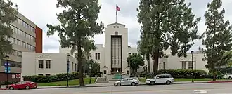The town's first bank was formed in 1908 when Burbank State Bank opened its doors near the corner of Olive Avenue and San Fernando Blvd. On the first day, the bank collected $30,000 worth of deposits, and at the time the town had a population of 300 residents.[29] In 1911, the bank was dissolved; it would then become the Burbank branch of the Security Trust & Savings Bank.[30]